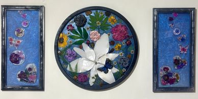 Part of my new "Bubbles Collection" Real Botanicals captured in a bubble of resin, placed on glass with a shimmery background $360 both